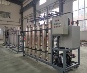 純水設備中采用的反滲透技術(shù)利用足夠的壓力使得溶液中的水通過反滲透膜進行分離,水通過膜的方向正好與滲透方向相反,利用大于滲透壓的反滲透法進行分離、濃縮、提純。在純化水制備過程中,反滲透技術(shù)不僅可用于去除水中的溶解鹽,還可出去水中的膠體、病毒、細菌、有機物等雜質(zhì),在這個過程中無需添加任何化學試劑的,可避免對純化水水質(zhì)的影響,而通過這個方法,其除鹽率可高達百分之九十八以上,因此,在純水設備中,反滲透技術(shù)的應用是十分重要的。